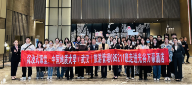 师生一行受到武汉光谷万豪酒店的热烈欢迎和热情接待。在酒店总经理蔡戍先生对万豪酒店做了介绍后,同学们随后在宴会预定中心总监段思思女士和人力资源经理贾婷女士带队下,参观考察了万豪酒店的设施设备和服务情况。