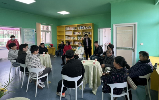 当日下午,我院师生在黄冈市残联等单位的带领下,走访黄州区建新社区“残疾人之家”,开展进一步参观学习。建新社区为残疾人士提供了文娱活动和手工劳作的场所,悉心做好心理咨询服务,还通过成立“阳光超市”、残疾人舞蹈团等举措支持残疾人士熟练使用家电和康复器材,并以“爱心义卖”等形式,让残疾朋友制作的手工艺品发挥更大社会价值。