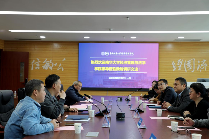 (通讯员 万心怡)3月21日上午,南华大学经济管理与法学学院党委书记胡海波、院长李玉琼、副院长刘保平、实验中心主任张革佚、工商管理系支部书记兼副主任曾经莲、工商管理系老师唐爱民和会计系老师罗园一行七人来我院开展交流座谈会。我院党委书记杨昌锐、院长於世为、副院长肖建忠、教师代表刘家国、邓九生参会,会议由副院长肖建忠主持。