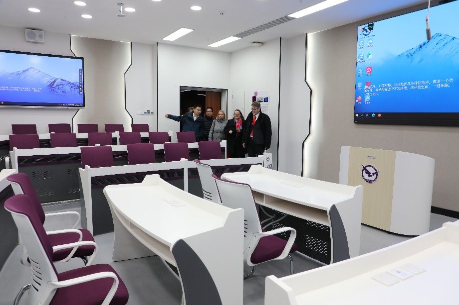 会后,於世为院长带领Lothar Koppers副校长一行参观了学院的智慧教室及实验室。