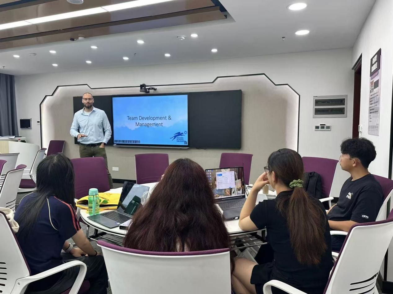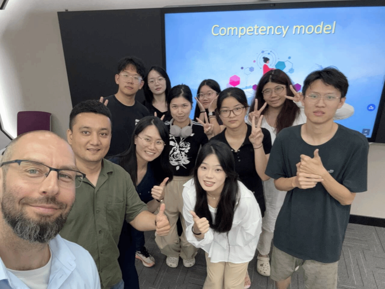 6月10日,DMITRIEV博士在经管学院智慧教室授课。他结合胜任力模型、T型技能及70-20-10学习法则等前沿理论,引导学生通过真实案例分析企业战略目标设定、学习需求评估及学习型文化建设。课堂采取互动研讨方式帮助学生掌握管理模型的实际应用,培养全球化视野与创新思维。