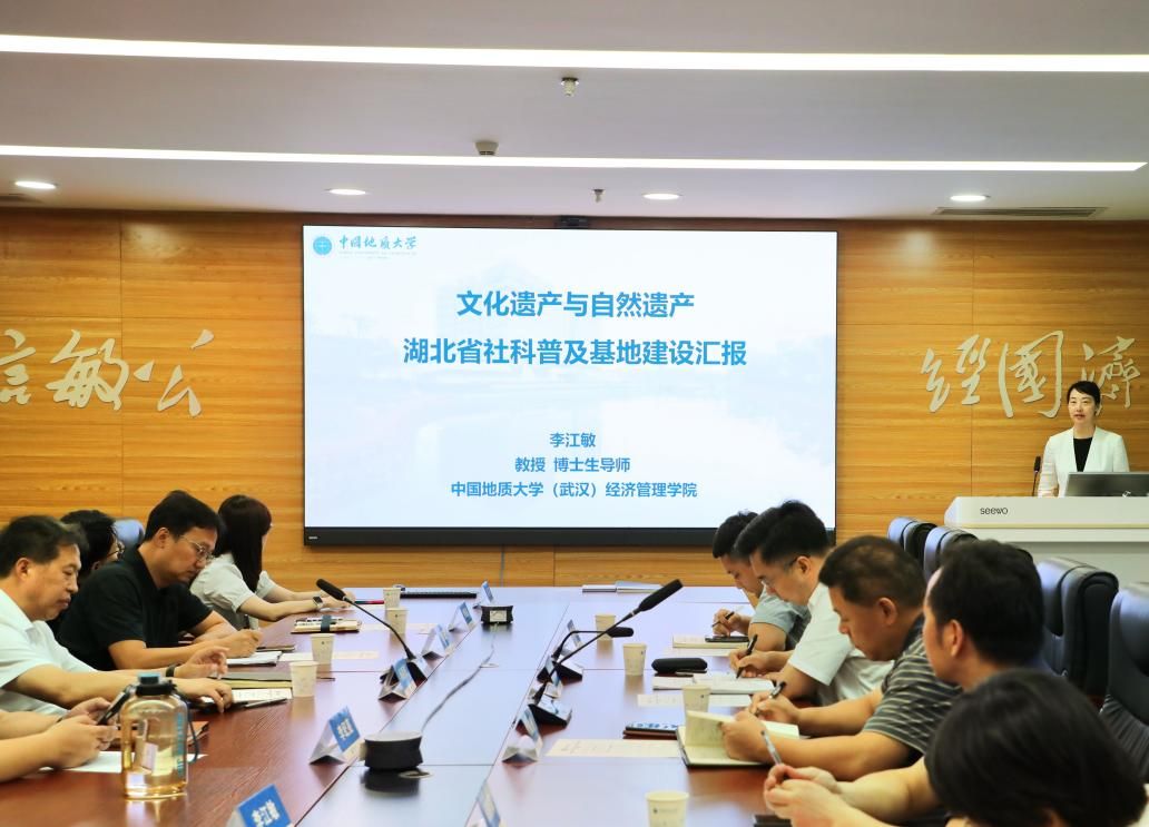 6月27日上午,省社科联党组成员、秘书长许巍一行莅临我院文化遗产与自然遗产湖北省社科普及基地开展走访调研。省社科联科普部主任徐维洲、学院党委书记杨昌锐、校科发院副院长兼经管学院副院长郭锐、校科发院人文社科办公室主任姜珊,学院李记亮副书记、郭海湘教授、团委书记努尔夏提·居勒提、基地负责人李江敏教授以及基地代表刘晶晶、肖拥军、柴海燕参加调研座谈。