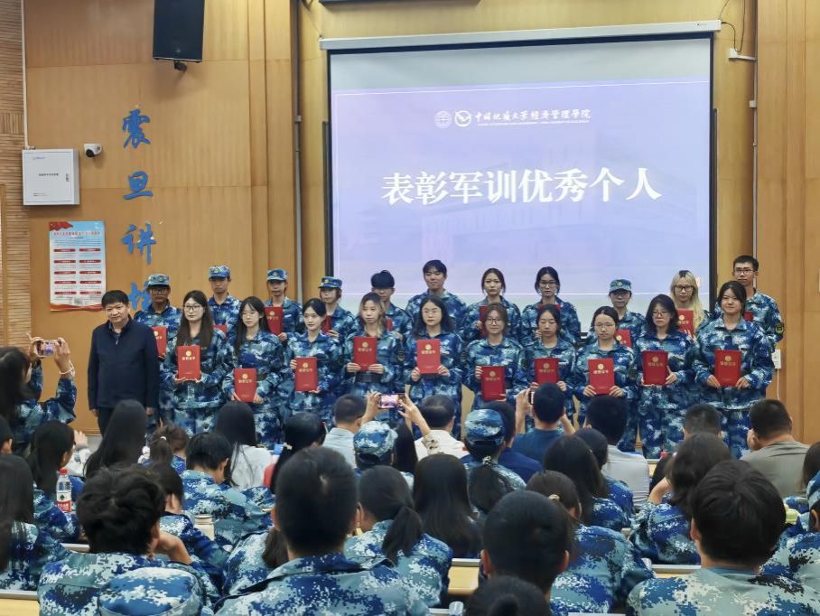 大会对军训期间表现优异的个人进行了表彰。副院长肖建忠、王广民为“军训优秀个人”颁发荣誉证书。在为期两周的军事训练中,男生军体拳虎虎生风,女生匕首操英姿飒爽,展现了williamhill英国2025级新生的良好精神风貌。