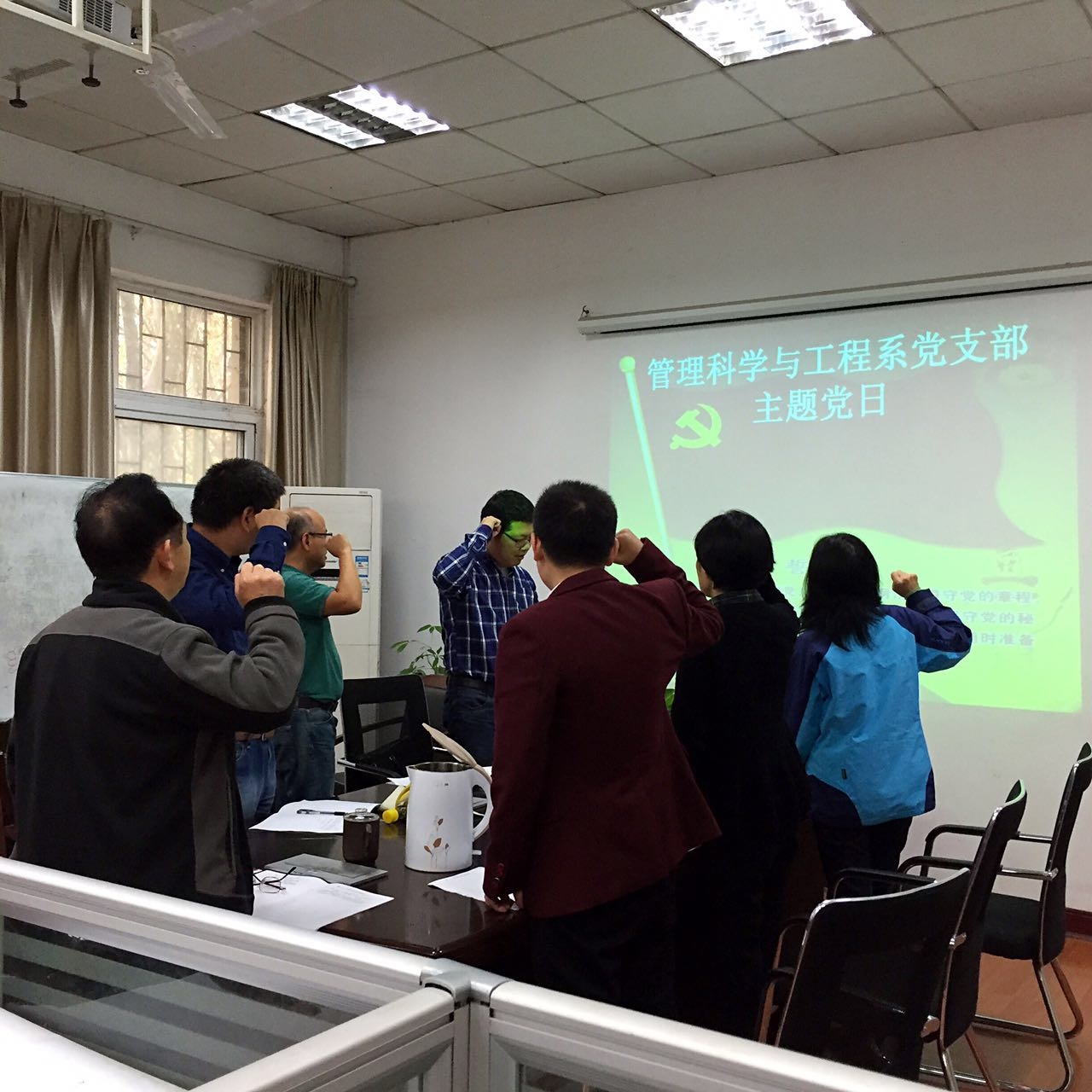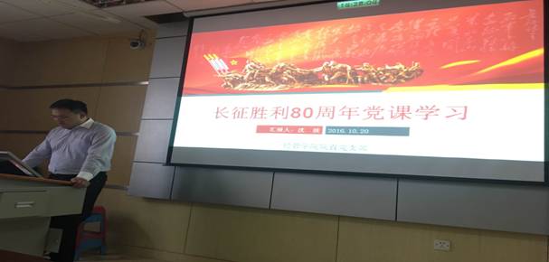 全体教职工党支部和学生党支部结合“两学一做”学习教育工作安排,认真组织召开支部大会,举办“主题党日”活动。各党支部党员齐唱国歌、重温入党誓词,集体诵读党章。同时,开展《壮举、奇迹、史诗——纪念中国工农红军长征胜利80周年》的主题讲座,认真学习《光明日报》特稿《铸就民族热血丰碑的英雄史诗》。