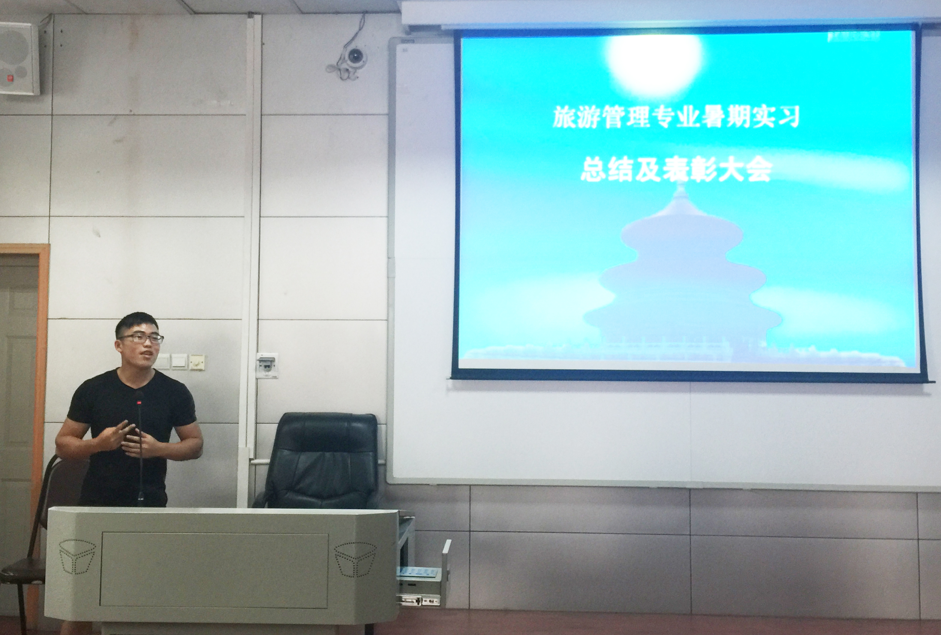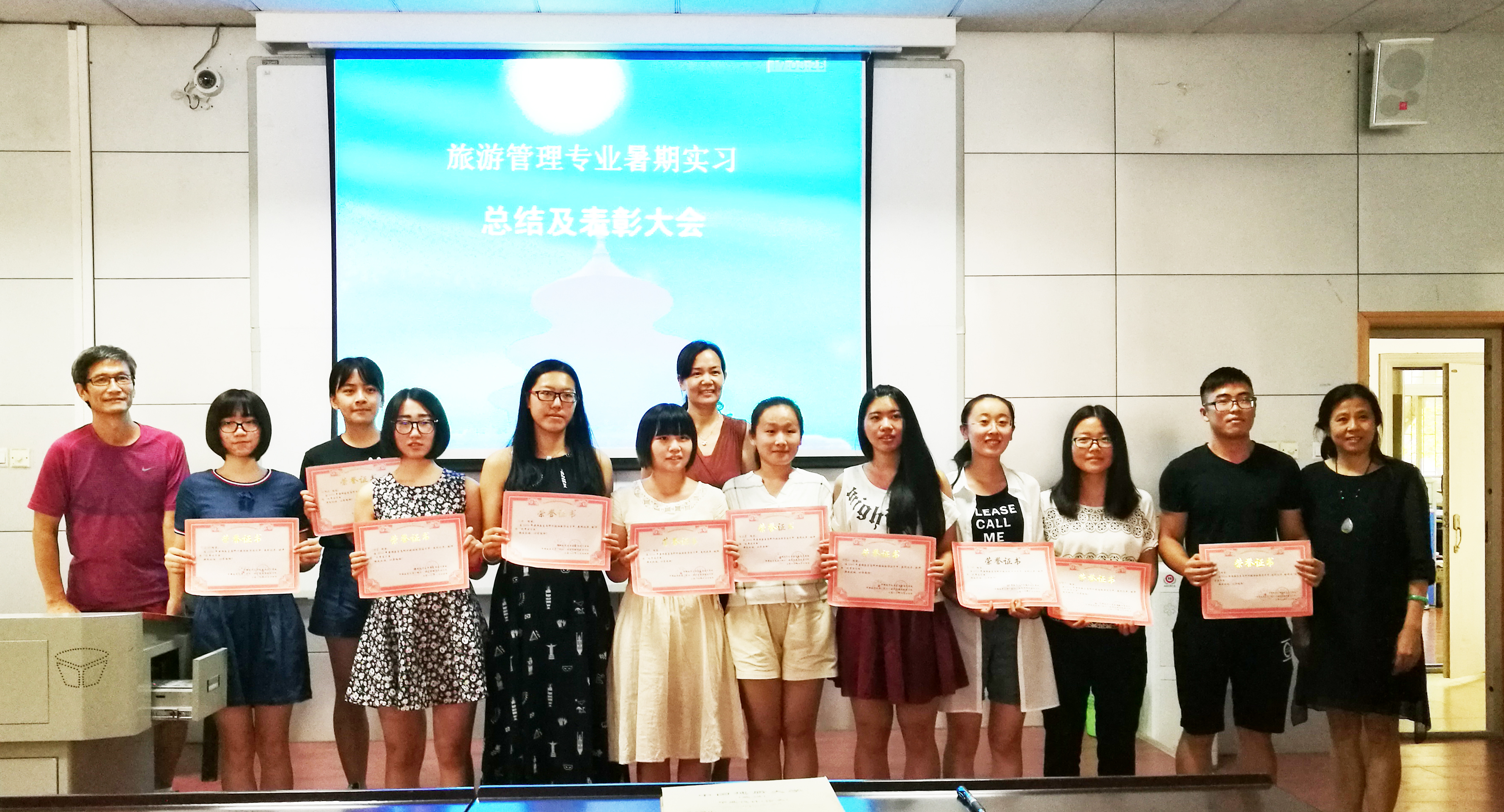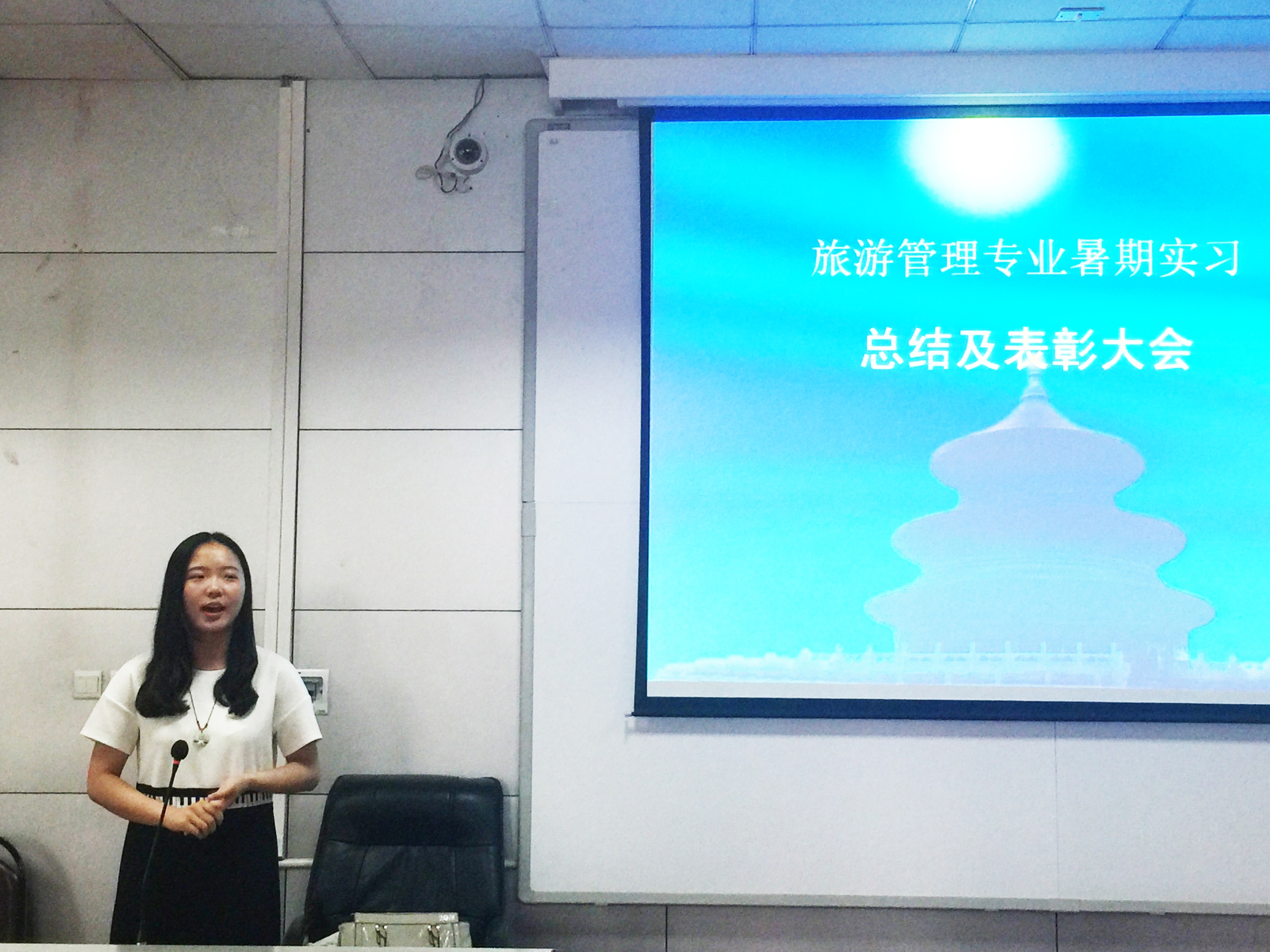 2016年9月8号下午3:30,旅游系暑期实习总结暨表彰大会在北三楼208室顺利召开。参与暑期旅游企业实习(085131班)与北戴河旅游综合认知实习(085141、085151班)的全体学生及带队老师参加了会议,大会由旅游系副主任李会琴主持。