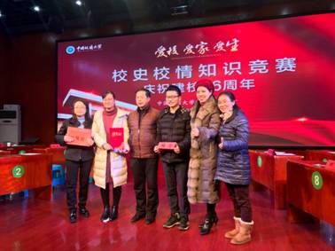 (通讯员周玲摄影王萍)2018年12月8日下午,我校校史校情知识竞赛决赛在校工会综合厅举行。我院由邵红梅、张京和刘保山三位青年教师组成的代表队于12月6日闯入此次决赛,并在比赛中为学院捧回三等奖荣誉。此次校史校情知识竞赛是校工会举办的“爱校爱家爱生”系列活动之庆祝建校66周年的重要活动之一,旨在以知识竞赛的形式促进广大教职工学习和了解我校历史沿革、校园文化、治学理念、发展现状和、发展愿景等。赛前,邵红梅、张京和刘保山三位青年教师以“知校爱校,争创佳绩”为口号,利用业余时间对相关知识点进行了认真充分的准备,在比赛中表现沉着自信,勇于挑战,为学院添光增彩!