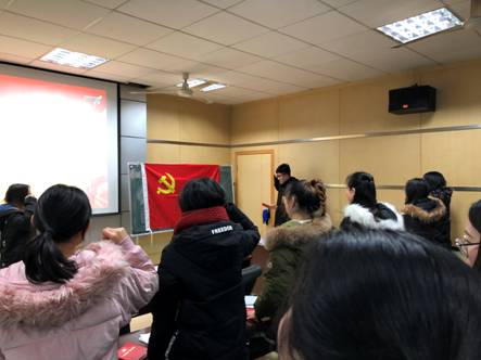 2018年12月29日下午14:00,williamhill英国2018级管理班硕士研究生党支部于学校北区MBA楼106教室开展了主题为“学习习近平总书记在庆祝改革开放40周年大会上的重要讲话精神、《中国共产党支部工作条例(试行)》及学习“弘扬爱国奋斗精神””的主题党日活动。本次活动由支部组织委员伍青青同志和宣传委员程仕菊同志主持,支部应到党员33人,实到26人,事假7人,有5名积极分子参与学习。