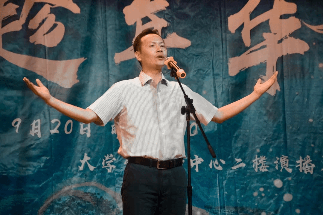 回校招聘的校友,2005级经济学专业本科生,招商银行黄石分行行长助理刘杨为同学们分享经历,鼓励大家努力向前。沈波老师在师生的强烈邀请下即兴献唱,一首《秋意浓》再次点燃全场。晚会的最后,学院主持人队以清朗醇厚的嗓音吟诵《追梦地大》,全场起立齐唱《歌唱祖国》,为晚会添上完美收官之笔。