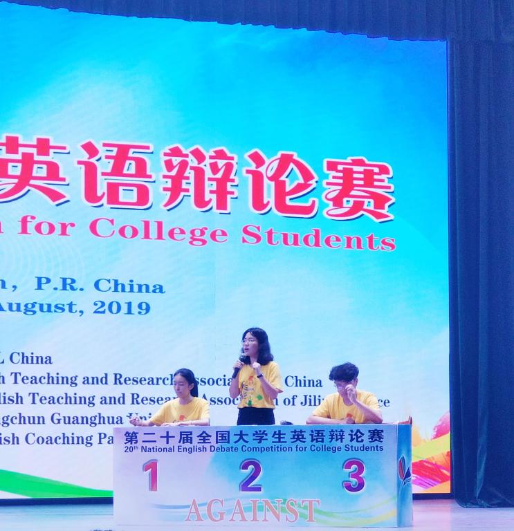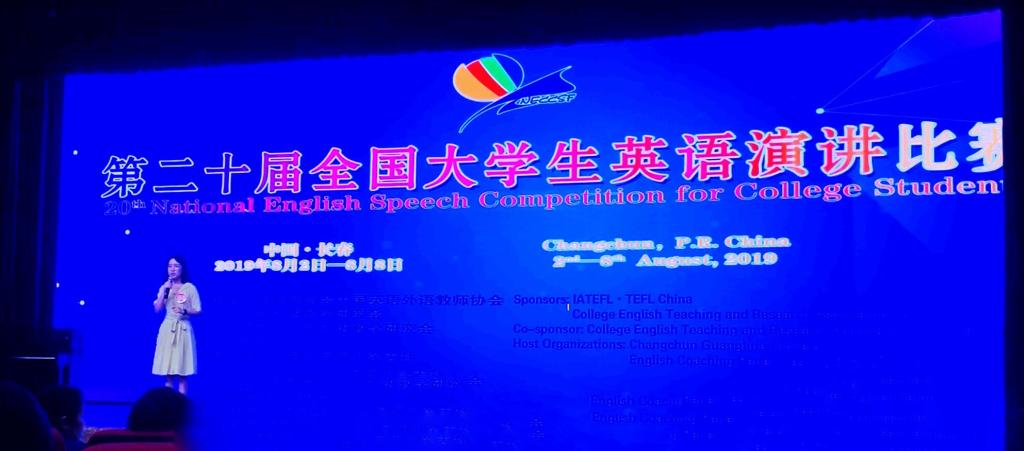 据悉,今年全国大学生英语竞赛总决赛举办时间为期一周,包括英语演讲、辩论和风采大赛等几项内容,这对于之前没有进行过公众演讲训练的邓恬音同学来说是一次考验,更是一种挑战,但学校和家人都非常支持她积极参赛。参赛前,她尝试自己写演讲稿,对着镜子练习,坚持看优秀演讲视频(如TED)和文章,同时努力把平时在中文辩论中学习到的内容转化成英语,全方面提升了英语能力和理论水平,即使在机场候机、在车站等车,都会抓紧时间读关于英语演讲的书籍,证明了只有努力,才能成功,只要努力,就能成功。