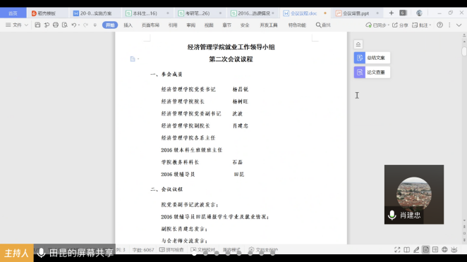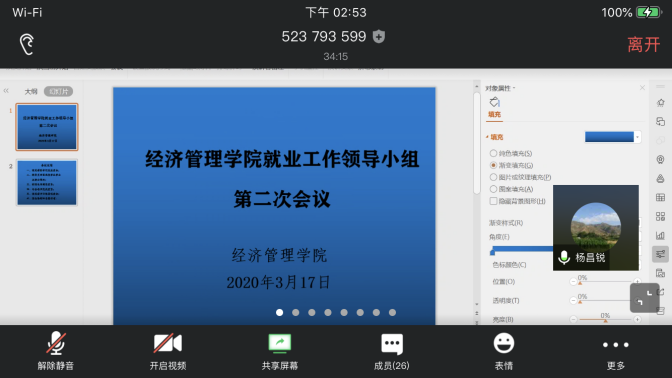 为落实各级各项就业政策,推进《williamhill英国全员促进就业工作实施方案》的实施,促进本届毕业生“顺利毕业、尽快就业”,学院就业工作领导小组于2020年3月17日14:00召开扩大会议,这也是领导小组的第二次线上会议。院党委书记杨昌锐、院长杨树旺、院党委副书记沈波、副院长肖建忠、教务科科长石磊、学院各系主任、2016级本科生班级班主任出席会议,会议由辅导员田昆主持。