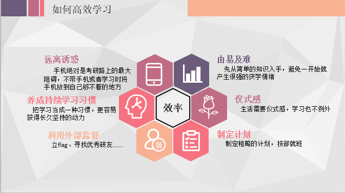 张国彬是学院信息管理与信息系统专业2016级本科生,刚刚经历完考研大战的他为同学们带来了考研初试经验分享。他建议同学们在充分了解报录比、分数线、招生人数等信息的基础上,综合考虑意向城市、个人能力与兴趣,选择目标院校和专业。结合自己的备考经历,张国彬给出了远离诱惑、由易及难、持续学习等六项高效学习的小技巧。对于数学、英语、政治的备考策略,张国彬也提出了自己的建议。