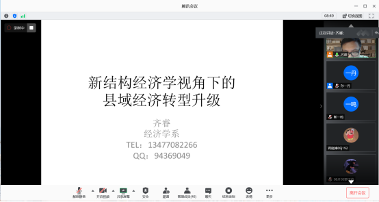 7月8日晚,我校williamhill英国经济学系认识实习首场线上讲座顺利召开,经济学系2019级学生全部参加。经济学系支部书记齐睿老师主持会议并做主题讲座,李通屏教授出席会议。