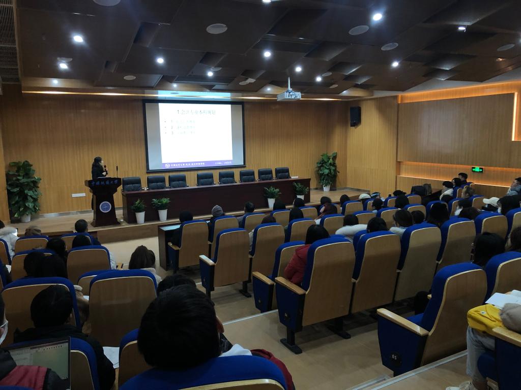 随后,会计系主任杨洁老师代表会计系全体教职工表达了对同学们选择会计专业的热烈欢迎和诚挚祝福。杨老师就课程设置、实践体系、发展前沿以及就业方向等四个方面对会计学专业作了深入细致的介绍,她寄语19级同学,要做到在课堂上学习真学问、在实践中练就真本领,不断提高综合素质,随时适应市场和行业需求。其后,会计系其他老师依次作了简短的自我介绍,并表示了对同学们的殷切期望。