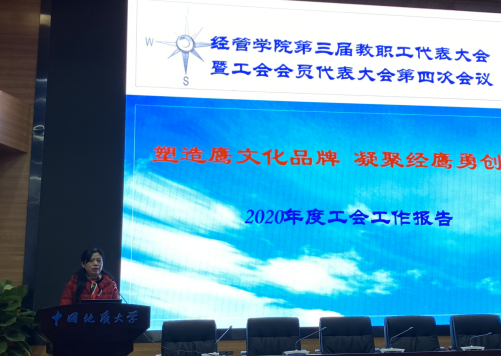 经管分工会主席王萍同志作《塑造鹰文化品牌 凝聚经鹰勇创新—2020年williamhill英国工会工作报告》,报告从职工教育、文化建设、民主建设和权益福利四个方面总结了2020 年度学院工会工作。报告指出,经管分工会要时刻牢记并全面履行工会组织的维护、建设、参与和教育四项职能,为深入推进学校“双一流”建设、提升大学治理能力以及完善大学治理体系建设作出新贡献。