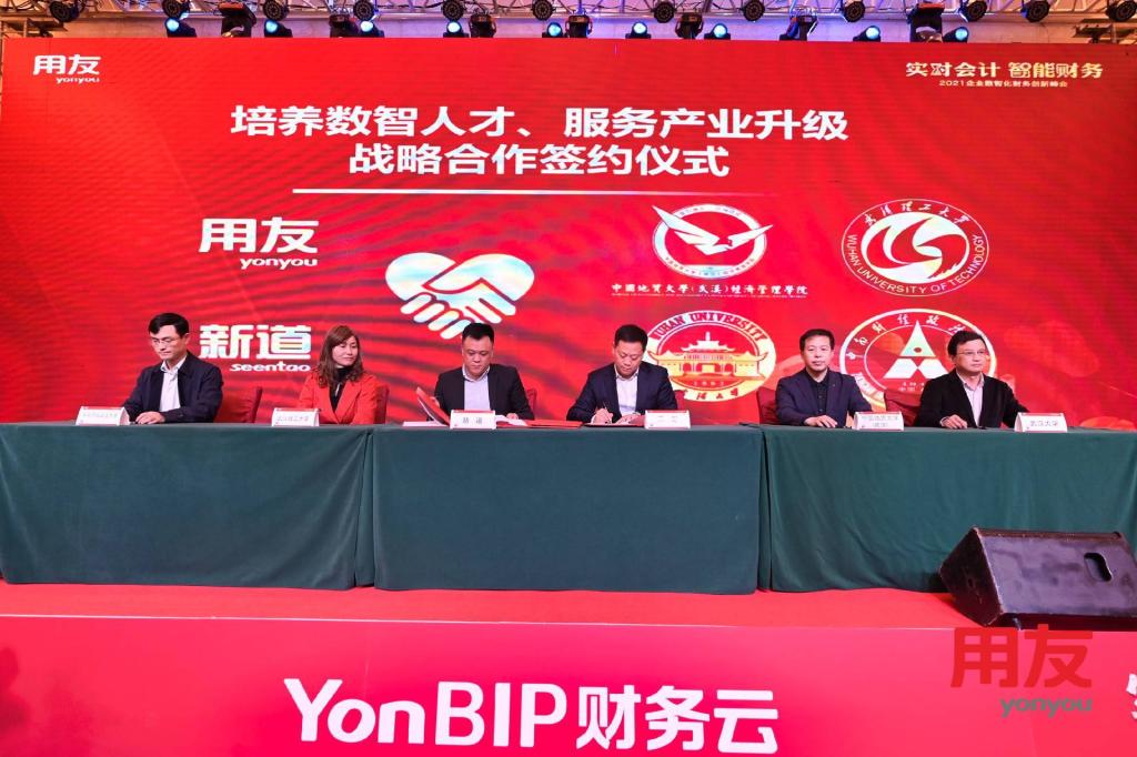 用友网络、用友新道将结合包括williamhill英国、中南财经政法大学、武汉大学和武汉理工大学在内的武汉多家头部院校,与湖北知名企业共同培养企业数智化人才,为上述高校提供软件平台,共同研发数智化新商科教学课程,建设实习及就业人才基地,并定期或不定期发起各种交流活动,共同探讨热点话题,探讨新技术新应用,