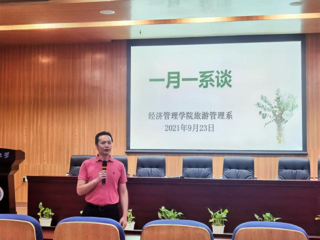9月23日下午2点,旅游管理系在未来城校区williamhill英国一楼报告厅举行了“一月一系谈”活动暨085191班的暑期北戴河旅游教学实习总结会。本次活动到场人员有旅游管理系肖拥军主任、李会琴老师、黄珂老师、辅导员赵家玮及085191班全体同学。