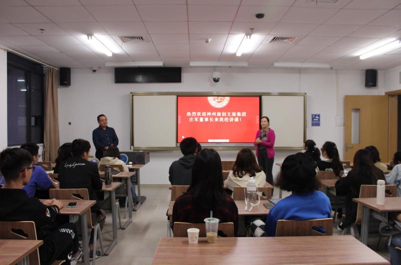 (通讯员 王斯维 陈可舒 李会琴)为深入贯彻落实“以本为本”的教育理念,促进教学课堂改革,提升课堂教学效果,增强学生对旅游行业实践的认知,10月11日18:30分,“知名企业家进课堂”活动在未来城校区公教1-609教室展开。此次活动,神州旅创文旅集团庄军董事长受邀走进085191班《现代酒店管理》课堂,为同学们带来了题为“第五次酒店住宿业浪潮下的产业整合与变革”的授课报告。