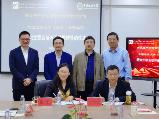 开元资产评估有限公司湖北分公司负责人孟利对朱冬元教授一行的到来表示热烈欢迎,并介绍了开元资产评估有限公司及湖北分公司的基本情况,对公司部门设置、业务分布及典型案例作了简要介绍,简要分析了当前行业的发展趋势以及公司未来的发展规划。本次协议的签署为进一步加强校企双方在人才培养、专业共建等领域的合作步伐奠定了基础,从而为双方在今后的合作发展道路上实现共赢,提供更为广阔的空间和更加坚实的平台。