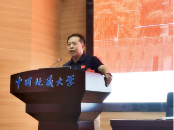 会议第四项。辅导员荣金玉向毕业生党员讲解经管院徽的“音、意、形”,并以经管院训“宽信敏公,经国济民”及学院的使命和愿景进一步深化学院文化教育,体现“地大经管特色”。