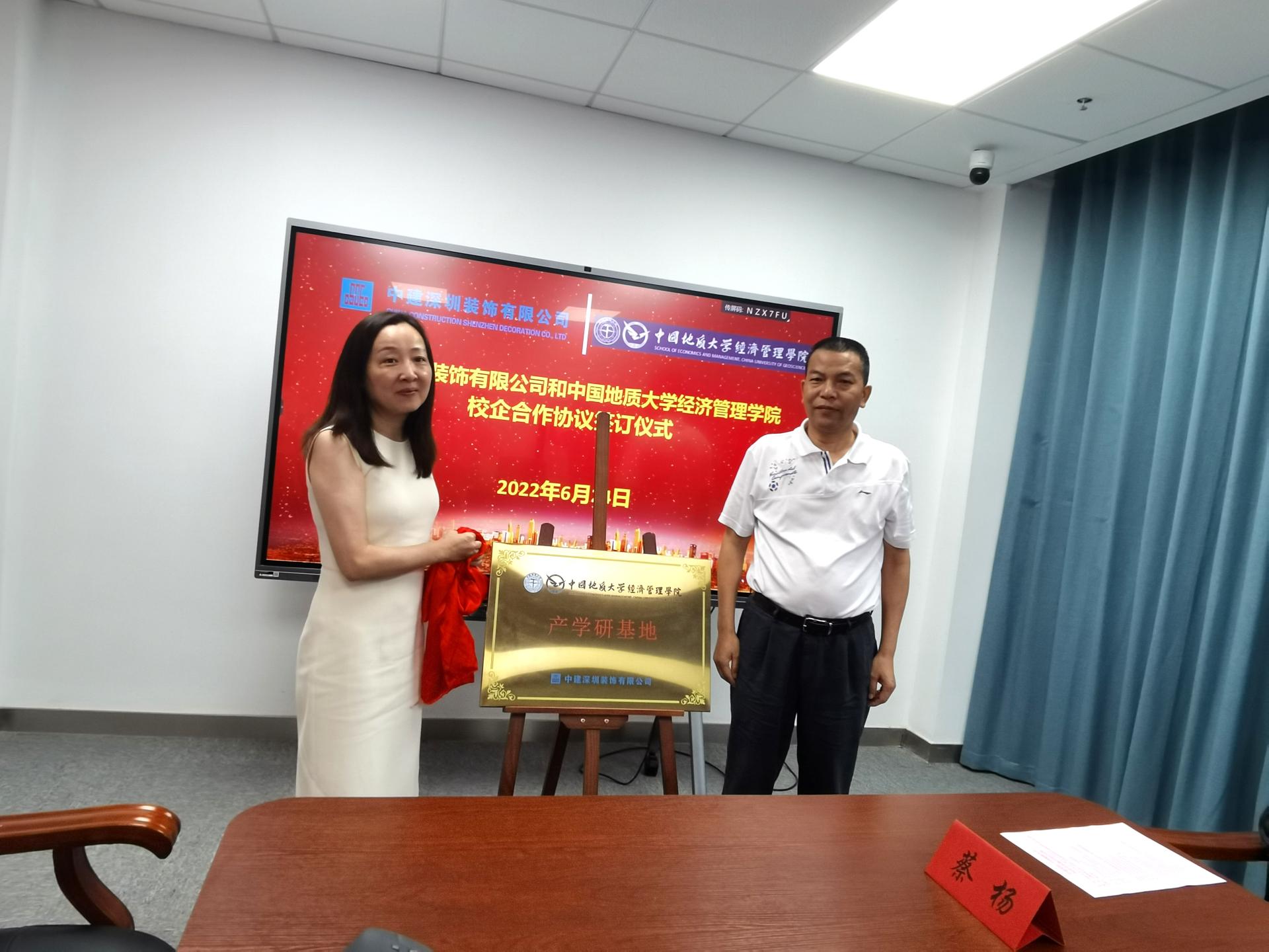 李冰与杨树旺共同为“产学研基地”揭牌。