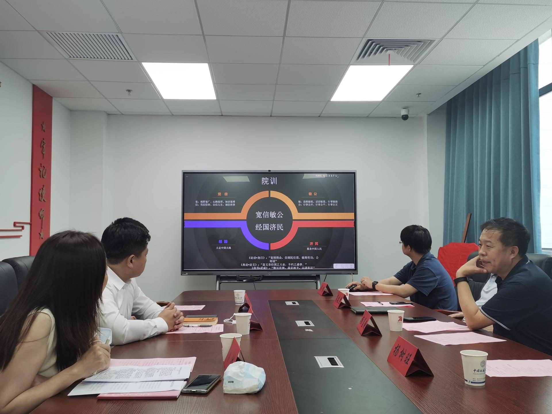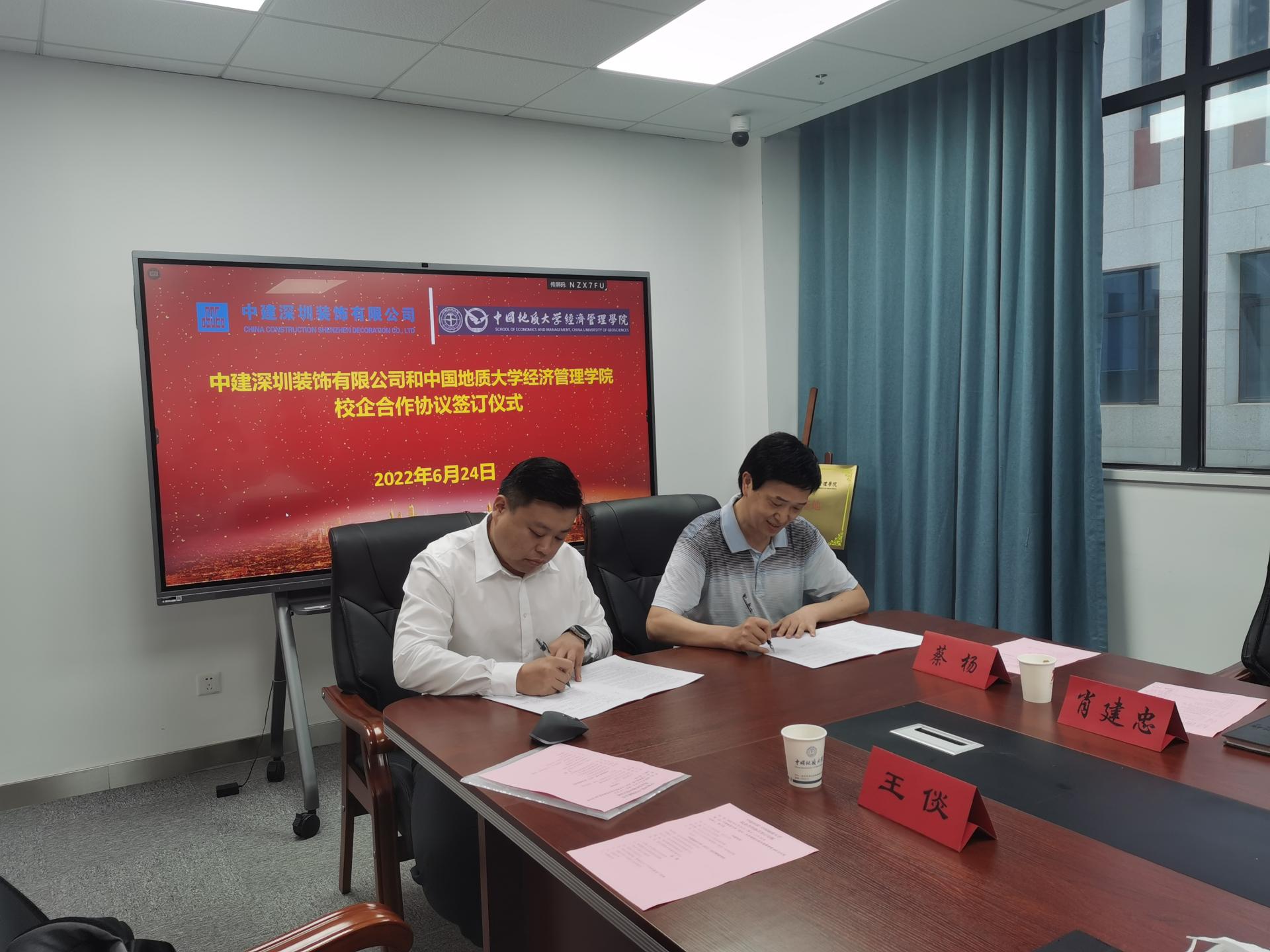 (通讯员 张雨 张弛)2022年6月24日上午10点,中建深圳装饰公司副经理李冰、武汉分公司经理刘铖、武汉分公司人力资源部经理贾宝鹏以及武汉分公司项目管理部经理助理王倓(我校校友)等人来院洽谈合作。学院党委书记杨昌锐、院长杨树旺、副院长肖建忠、管理科学与工程系党支部书记孙涵、辅导员蔡杨、兼职辅导员张雨参会。