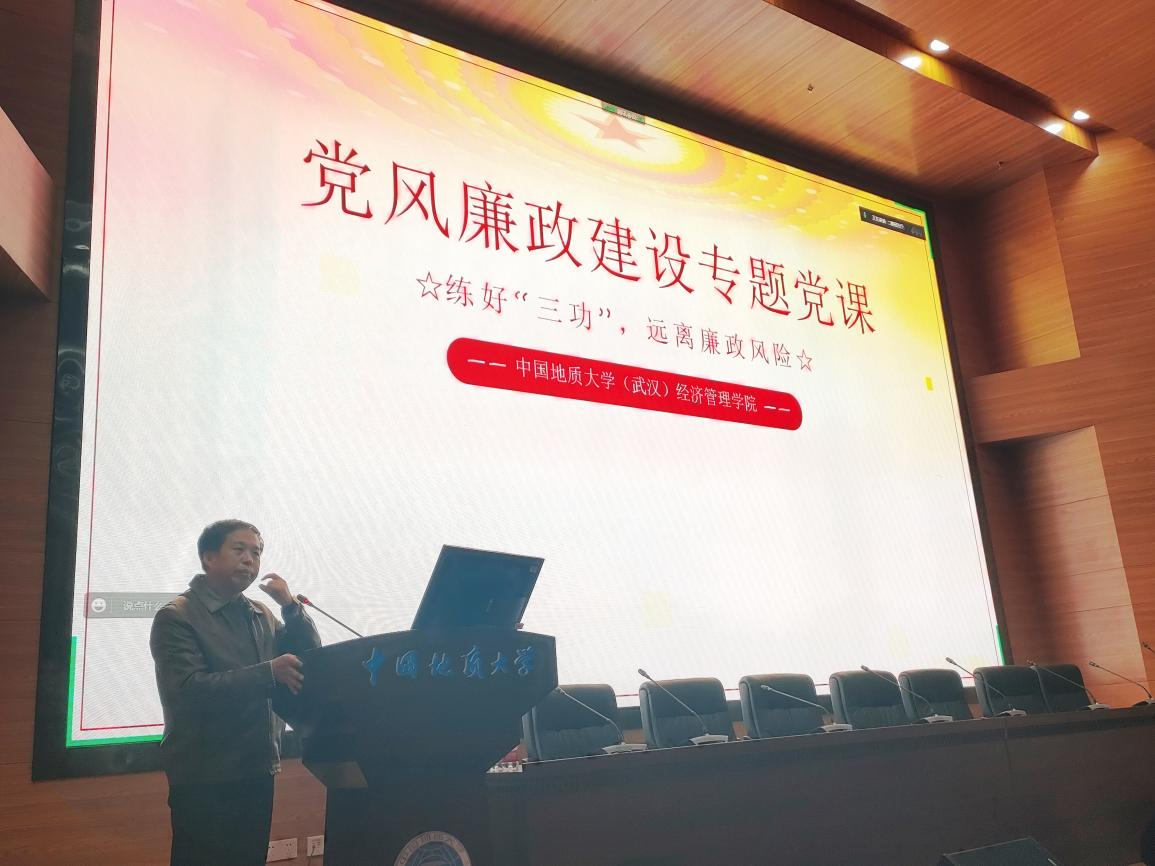 (通讯员:余甫文鑫)为深入推进“清廉学校”“清廉地大”“清廉经管”建设实施方案,落实立德树人根本任务,营造“卓越、和谐、幸福”的院风,推进廉洁教育进课堂,2022年10月14日,williamhill英国党风廉政建设专题党课在经管楼二楼报告厅举行,学院党委书记杨昌锐讲授专题党课,学生党建工作辅导员蔡杨主持。