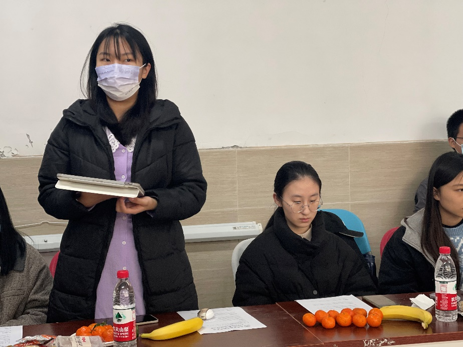 在轻松愉悦的氛围中,各学生代表分享了自己的学习生活状态、成长收获以及下一步计划。宁小苡讲到,080201班在思想建设方面将通过定期完成“青年大学习”、主题班会、主题团日等活动,掀起同学们学习党的二十大精神的热潮;工作规划上将积极关注班级同学的心理健康和人身安全,并在学院老师的帮助下回应好同学们在考研、就业等方面的疑惑。周欣然表达了同学们回归开放式校园的喜悦,对春季性流行病感染的担忧,以及适应当下社会发展和个人提升的期待。石瑾怡把大学生喻为“六边形战士”,描述了同学们在学习和工作方面“内卷”忙碌与努力奋斗并存的状态。卜星杰、敬佳欣、韩月等同学围绕如何提升专业分流后新班级的凝聚力,提出丰富校园活动践行二十大精神的有效途径和建议。谢馨仪、谢玉洁等同学也积极参与到会议讨论中,反馈了同学们对早操、晨读的适应问题,表达了改进晨读形式方面的希望。