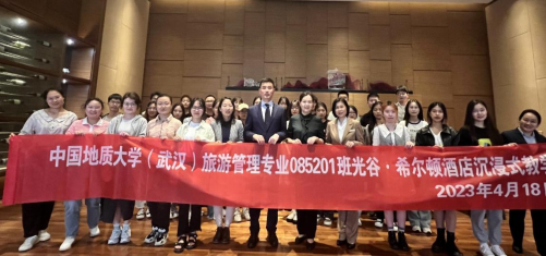 (通讯员:刘晶晶 黄珂 审稿:李会琴)为推进课堂教学改革,引导学生职业规划,推动校企合作,提升人才培养质量,2023年4月18日下午,旅游管理系李会琴主任与刘晶晶副主任带领085201班全体学生,到光谷·希尔顿酒店开展“沉浸式”教学活动。本次活动主要环节有:希尔顿酒店集团介绍、酒店管理层见面会及实地参观等。光谷·希尔顿酒店总经理王虎先生、人力资源部总监王梅女士、人力资源部副经理陈小霞女士等对同学们进行了详细指导,并进行了深入交流。