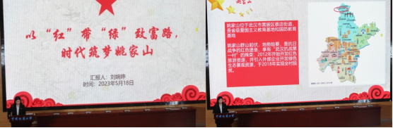 在各决赛团队进行作品展示之前,师生共同观摩了刘婉婷同学带领“山河逐梦队”在第十二届全国大学生红色旅游创意策划大赛中荣获华中赛区一等奖作品:《以“红”带“绿”致富路,时代筑梦姚家山》。该作品系统介绍了姚家山红色旅游资源,深入解读当地“红+绿”旅游产业为当地带来的效益,诠释红色旅游同生态旅游相融合带动乡村振兴的发展路径。