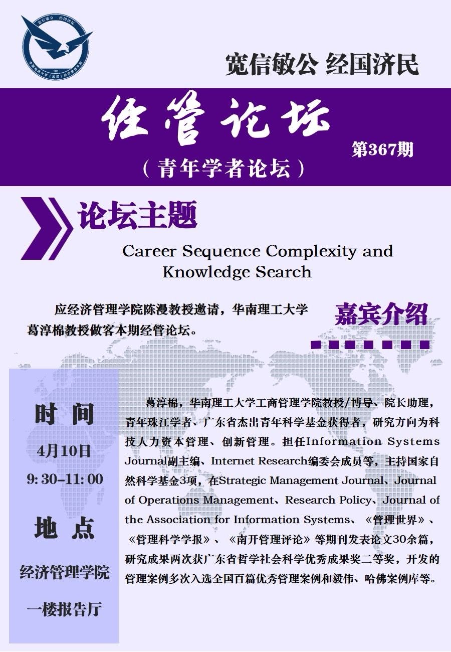 经管论坛(第367期)Career Sequence Complexity and Knowledge Search