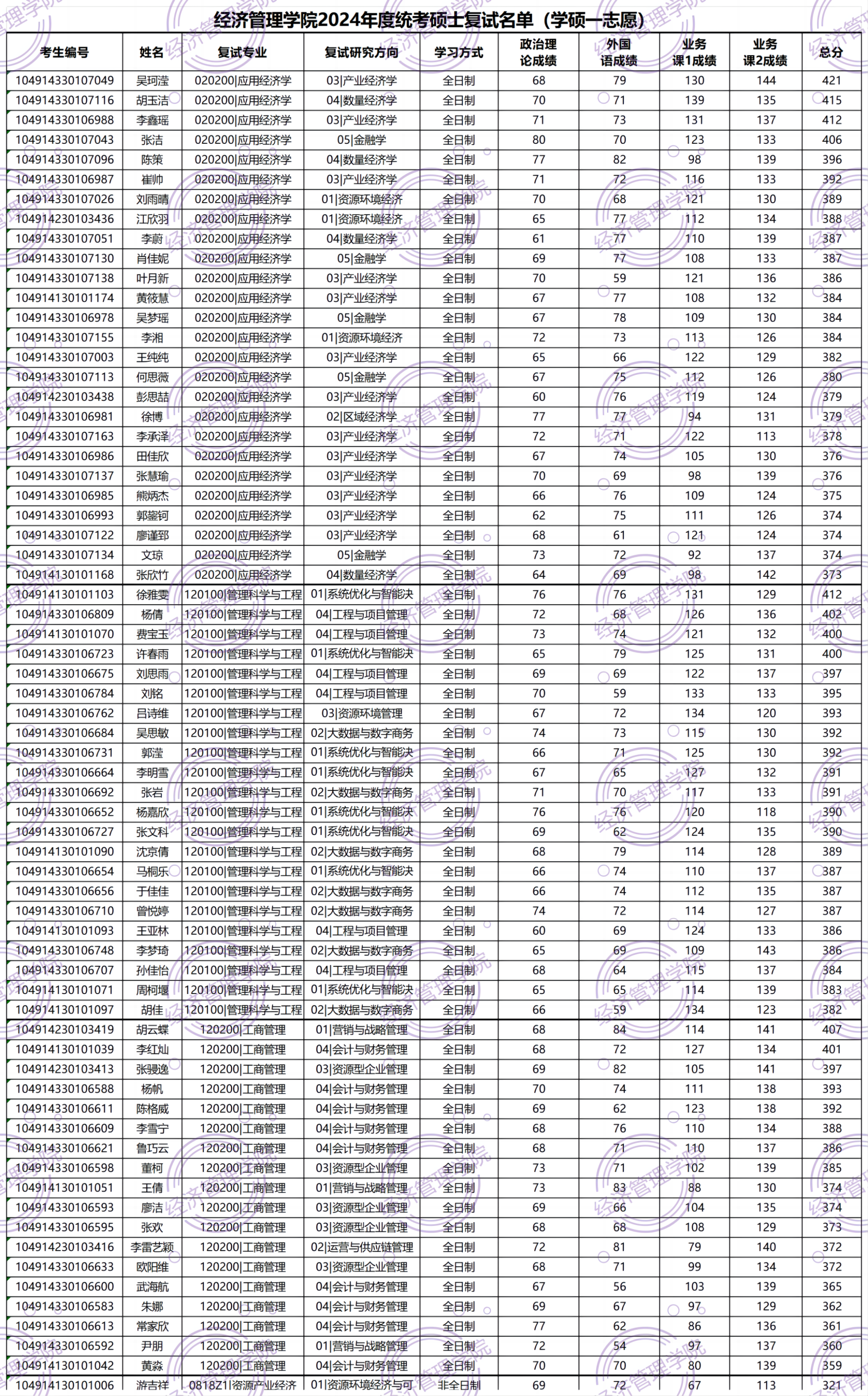 附件1:williamhill英国2024年度统考研究生复试名单(一志愿)_统考硕士初试成绩
