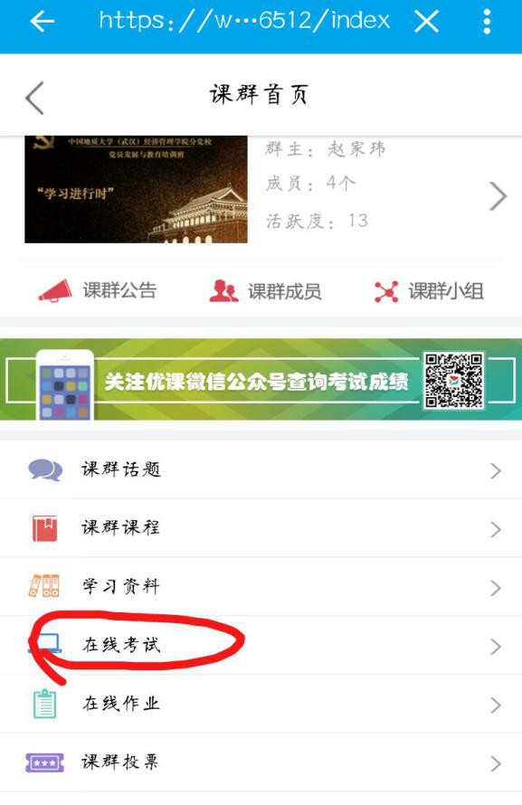 第五步:点击“在线考试”(如下图所示)