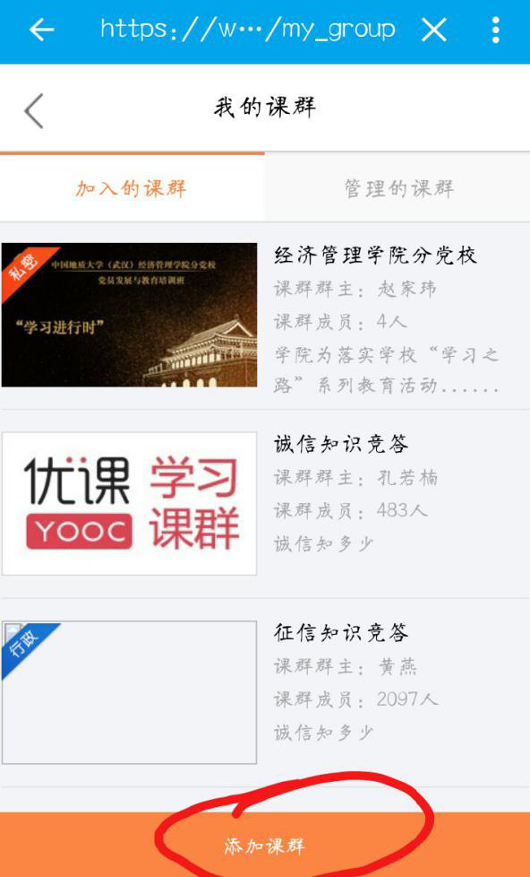 第三步:点击下方的添加课群(如下图所示)