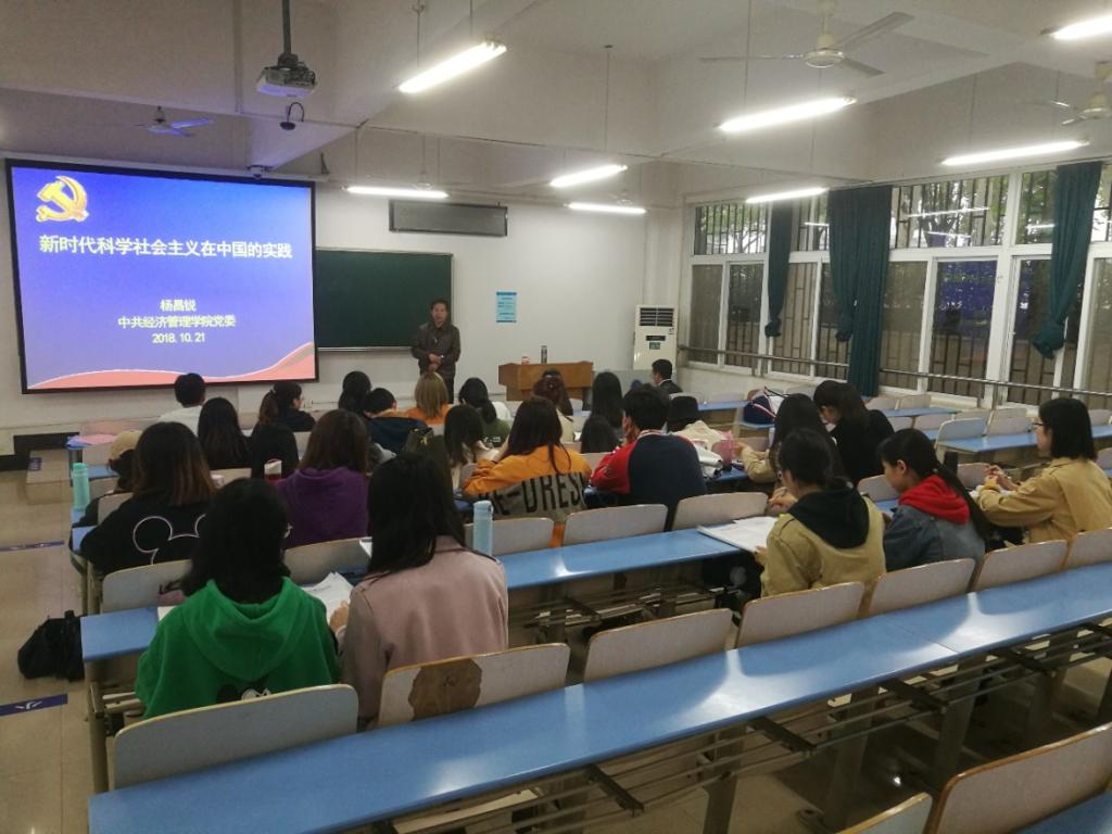 书记讲党课,“学习之路”师长作伴。10月21日下午,学院党委书记杨昌锐老师以“新时代科学社会主义在中国的实践”为主题进行授课,杨老师以马克思主义三大组成部分为理论依托,展示了科学社会主义在中国历史上的生动实践,并通过讲述新时代“中国成就”指出十九大和习近平新时代中国特色社会主义思想是科学社会主义在中国又一次成功实践,并嘱托学员要真正理解新时代青年学子的使命所在和使命真谛,在学思践悟中走好“学习之路”。