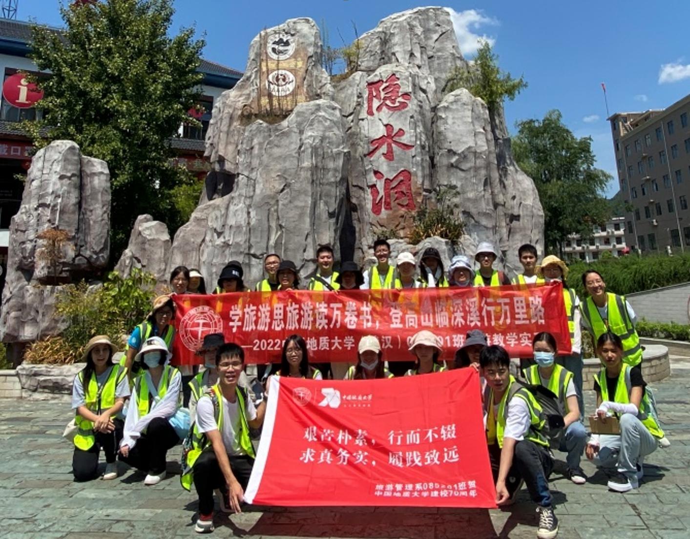 以学习、传承并发扬“艰苦朴素,求真务实”校训精神和williamhill英国的“宽信敏公,经国济民”院训精神作为实习课程思政教学的出发点,结合中国地质大学建校七十周年校庆,方案为本次实习确立了“艰苦朴素,行而不辍;求真务实,履践致远”的实习精神理念,引导同学们要在实习中,积极发扬校训精神,秉承求真,践行务实,在实习实践中理论联系实际,打好专业根基,在旅游成才路上行稳致远。并鼓励实习同学以脚踏实地的实习表现,为中国地质大学建校七十周年献贺。