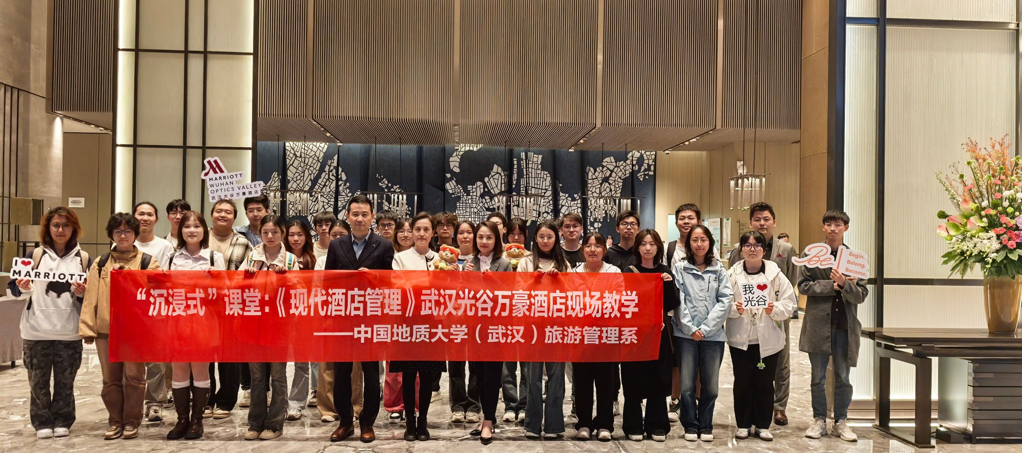旅游管理系高度重视此次活动。支部书记李江敏教授、系主任李会琴教授与武汉光谷万豪酒店总经理蔡戍先生及管理团队细致沟通,为同学们的“沉浸式”课堂设置了企业文化展示、采访发布与职业规划(中国地质大学专场)、酒店环境设施参观等特色交流环节。