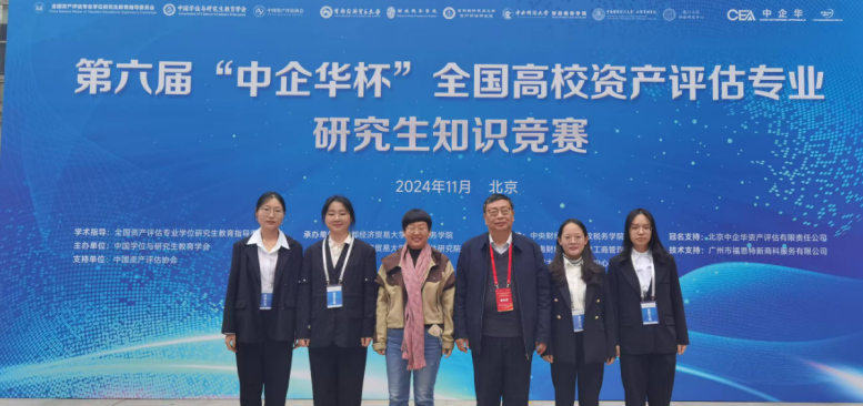 全国高校资产评估专业研究生知识竞赛是由全国资产评估专业学位研究生教育指导委员会指导,中国学位与研究生教育学会主办,本次比赛由首都经济贸易大学财政税务学院、首都经济贸易大学资产评估研究院承办,中央财经大学财政税务学院、中南财经政法大学工商管理学院、厦门大学评估研究中心协办,北京中企华资产评估有限责任公司冠名支持。本届知识竞赛主题为“资产评估赋能新质生产力提升”,来自全国28所高校的资产评估专业硕士研究生参加了竞赛。竞赛设一等奖1名,二等奖2名,三等奖3名,优秀奖若干。我校代表队由陈艳副教授带队,资产评估专业硕士研究生姜薇、杨晓、张一丹、朱益冰四位同学组成。竞赛分为初赛、复赛和决赛,包括统一笔试、案例分析和现场知识竞赛等多个环节,经过多轮比拼,我校代表队最终喜获三等奖。