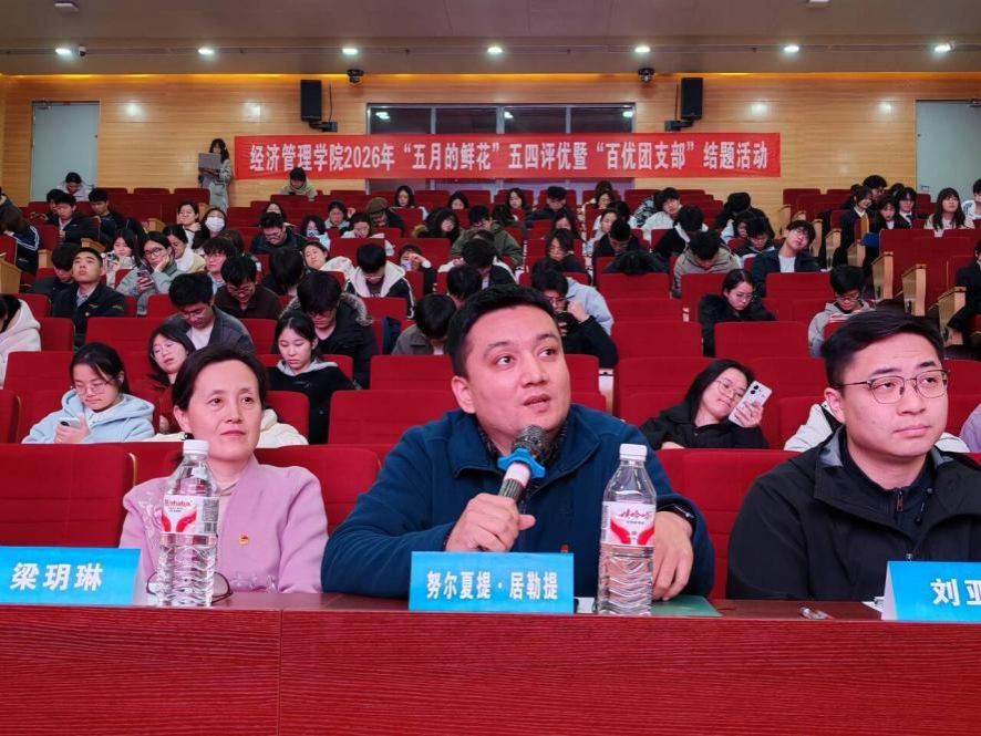 (通讯员:朱译文 徐媛)为深入学习贯彻习近平新时代中国特色社会主义思想,全面落实党的二十届四中全会精神,传承五四精神,引领青年思想、凝聚团支部力量,激励各团支部创优争先,展现新时代共青团员的昂扬风貌,2026年3月19日,williamhill英国团委在未来城校区经管楼二楼报告厅举行2026年“五月的鲜花”五四评优暨“百优团支部”结题活动。学院工会主席、大数据科学与应用统计系王林珠,旅游管理系梁玥琳,学院团委书记徐媛,专硕辅导员努尔夏提·居勒提,2022级辅导员蔡杨,2024级辅导员刘亚旭出席并担任评委。