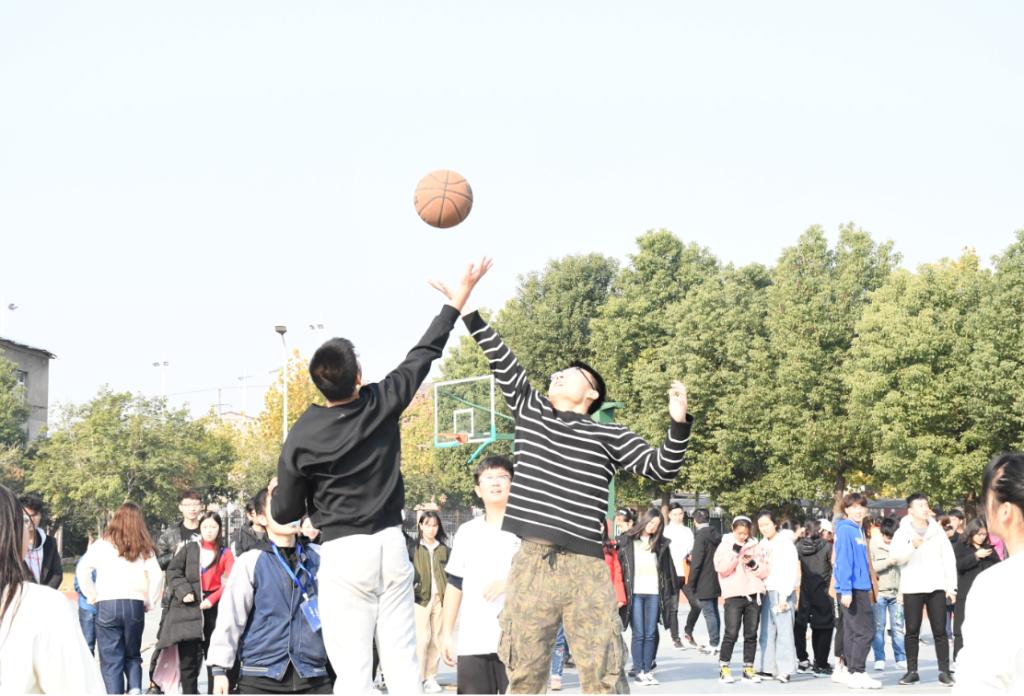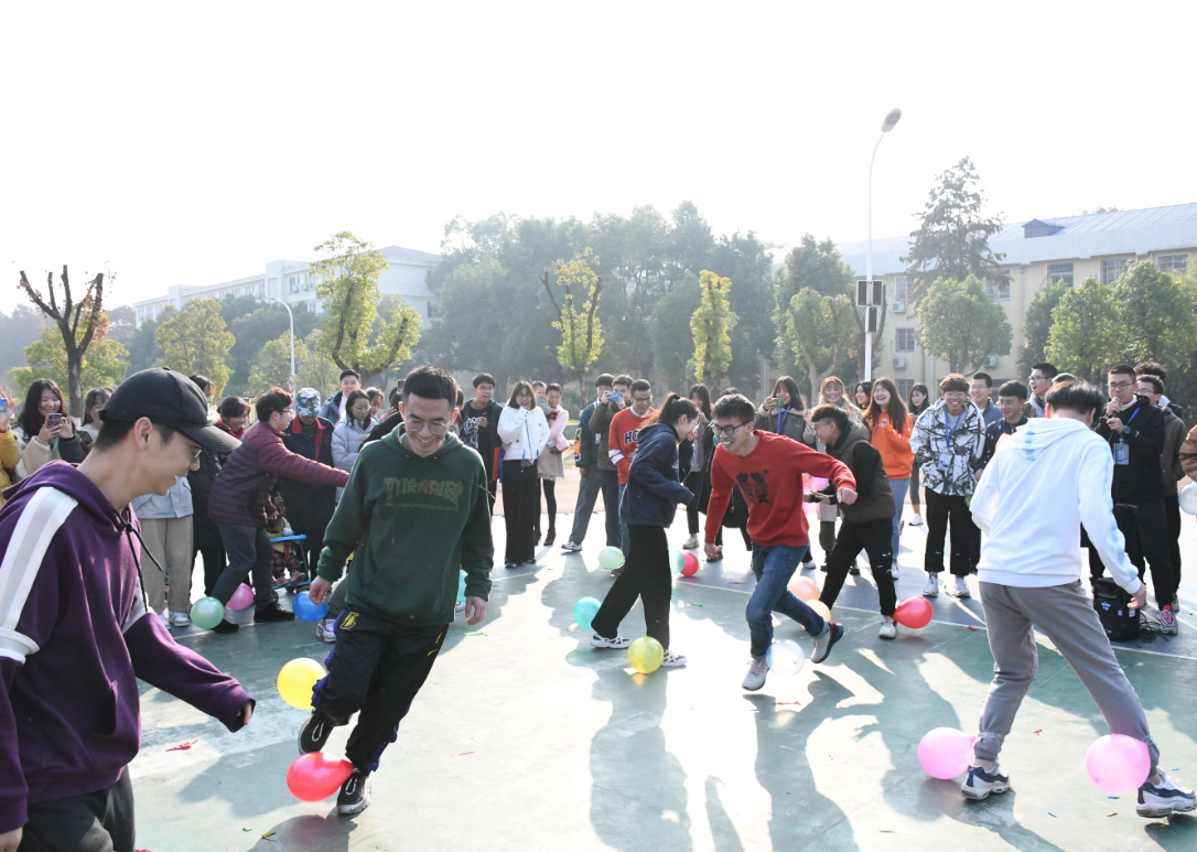 比赛中,同学们兴致高昂,参赛队员都以饱满的精神,不懈的坚持,团结一心投入其中。各个项目都考验了团队成员间的信任、理解和合作,不仅考验了成员们自身的速度、耐力和判断力,还要求大家集思广益、默契配合。在“踩气球”比赛中,各队需两人三足完成比赛,需要队员们齐心协力、相互配合、相互协调;“不要触地”考验队员的灵活应对能力,需要成员们在发挥创造力的基础上紧密合作;在“铁人五项”的比赛中,队伍间竞争十分激烈,偶尔有队伍出现失误停滞不前,此时周围观众都会为队员们加油打气。整个比赛过程中,各队队员热情参与、积极配合,比赛在轻松愉悦的氛围中结束。