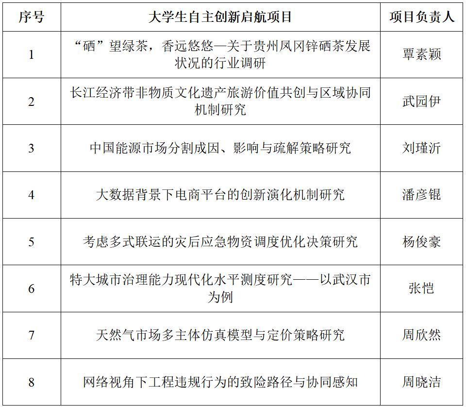 根据大学生自主创新资助计划立项工作的相关要求和实施细则,经济管理学院通过组建专家评审委员会,已完成遴选领航团队和启航项目的立项,现予以院内公示:
