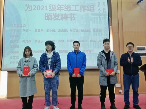 随后,徐老师对2021级年级工作组上学期的表现进行了肯定,院党委副书记李少杰为年级工作组成员颁发聘书。