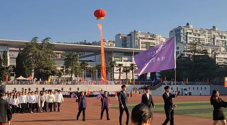 在校第一届健身气功八段锦比赛中荣获一等奖的经管师生们,在开幕式八段锦表演阵列的C位,向师生们展现了中华优秀传统武术文化的魅力。