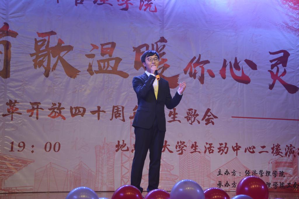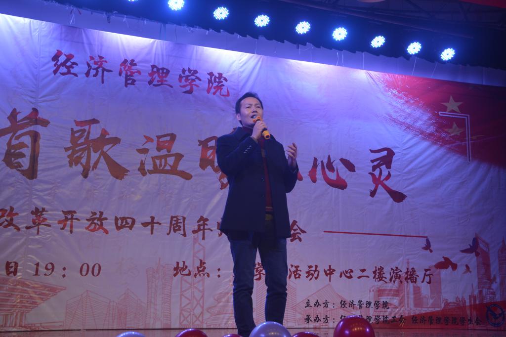 本次歌会分为“春回大地”“激情岁月”“乘风破浪”“继往开来”四个篇章,以歌曲的形式纪念了改革开放走过的极不平凡的四十年,用最温情的方式增进了师生间的感情,拉近了师生间的距离,每一首精心准备、深情演唱的歌曲都表达了经管人对党和祖国的热爱。歌会结束后,参加歌会的2017级本科生张康激动地说;“第一次看到这么多自己的老师上台表演,气氛真的很活跃。感谢这场歌会让我们多对讲台下的老师有了更多的了解,祝福学院越来越好,也祝福祖国改革开放的道路越走越宽广!”