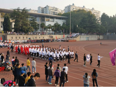 在11月8日的开幕式上,由我院师生组成的williamhill英国方阵步伐稳健,意气风发,昂首阔步走过主席台,亮相全校师生。“宽信敏公,经国济民”的口号,铿锵有力,赢得了阵阵掌声,展现了经管人追求卓越,奉献国家的信念和毅力。