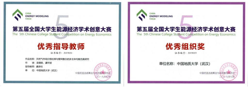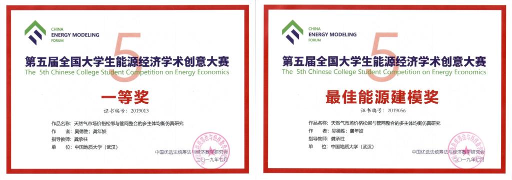 近日,第五届全国大学生能源经济学术创意大赛总决赛在中国矿业大学举行。由我院应用经济学专业吴德胜和资产评估专业龚年姣二位研究生组成的参赛团队,提交的学术作品《天然气市场价格松绑与管网整合的多主体均衡仿真研究》,经过初赛会评,决赛答辩,最终荣获全国一等奖,并在中国能源模型论坛中,成为唯一荣获最佳能源建模奖的研究生团队,经济学系龚承柱副教授荣获优秀指导教师,我校被授予优秀组织单位。