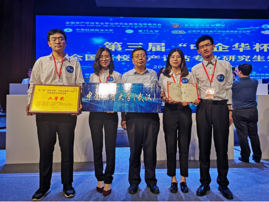 2019年6月23日晚,第三届“中企华杯”全国高校资产评估专业研究生知识竞赛在首都经济贸易大学琢玉讲堂落下帷幕。在我院朱冬元教授带领下,由资产评估专业研究生曹君茹、阴朝旭、于春雪和樊帆组成的英国威廉集团代表队,在全国25支高校参赛队伍中脱颖而出,总成绩排名第三,斩获二等奖!朱冬元教授获得优秀指导教师奖。