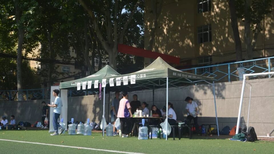 根据学校的军训实施方案,我院440名本科新生按照大类专业分别编为二营4-5连的8-11排,在8名承训教官的指导训练下认真训练。军训场地附近设有军训服务点,由学生会的高年级同学提供饮用水、常用解暑药品等必要保障,同时作为军训期间的日常请假管理点。