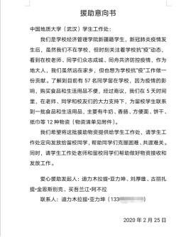 学校党委副书记王林清教授称赞道:“特殊时期,特别关爱,彰显同学情、爱校情,感谢同学们!”同时表达了问候。地大有真情,地大有温暖!在这个病毒肆虐的日子里,是地大“石榴籽”们用真情和爱心汇聚起了一缕阳光,团结一致为留在学校的同学们送去了温暖。收到援助物资后,老师和同学们用QQ、短信等方式纷纷点赞和表示感谢,也有的老师和同学以赋诗吟诵等方式表示致敬。