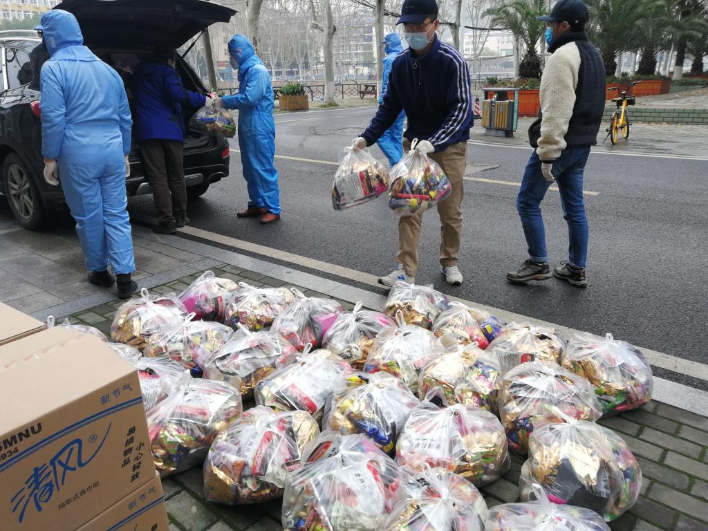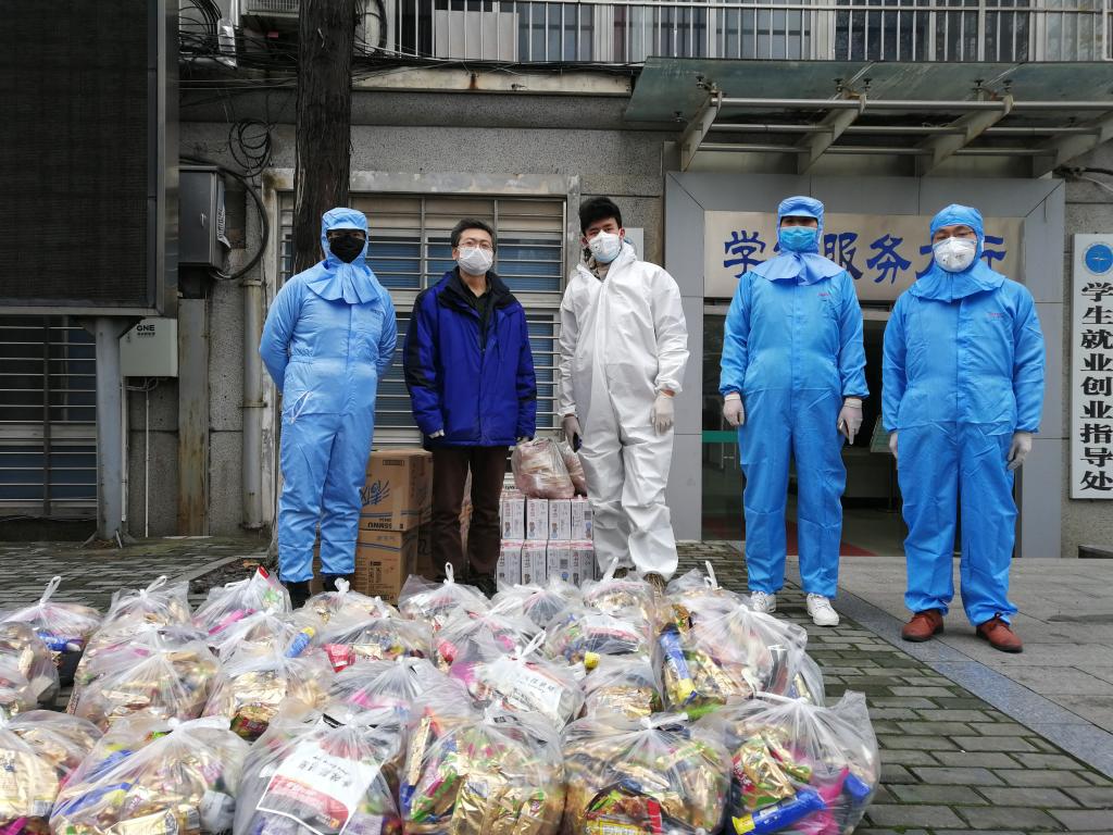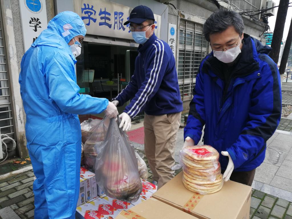 在武汉封城、物资难寻等重重困难中,我校williamhill英国迪力木拉提•亚力坤等4位新疆籍同学远在家乡,在老师、同学和校友们的共同努力下,为期5天内,联系到3家供货商的馕、牛奶、烤鸡腿、香肠、方便面、干果、抽纸巾等12种硬核援助物资,全部提供给了我校学生工作处,并委托学工处将物资分发给留校的同学们。26日下午,物资抵达学校,经学工处、保卫处和经管学院的老师们前期协调和有力组织下,留校学生临时党支部的同学积极配合,有序将物资分发到了每一位留校同学的手中。