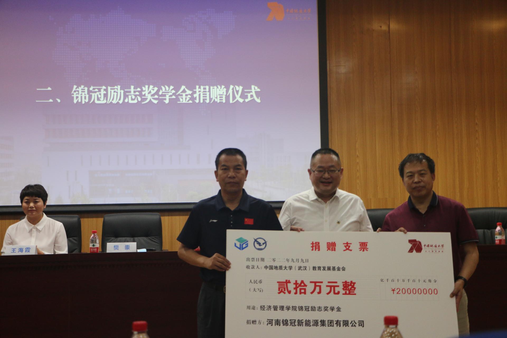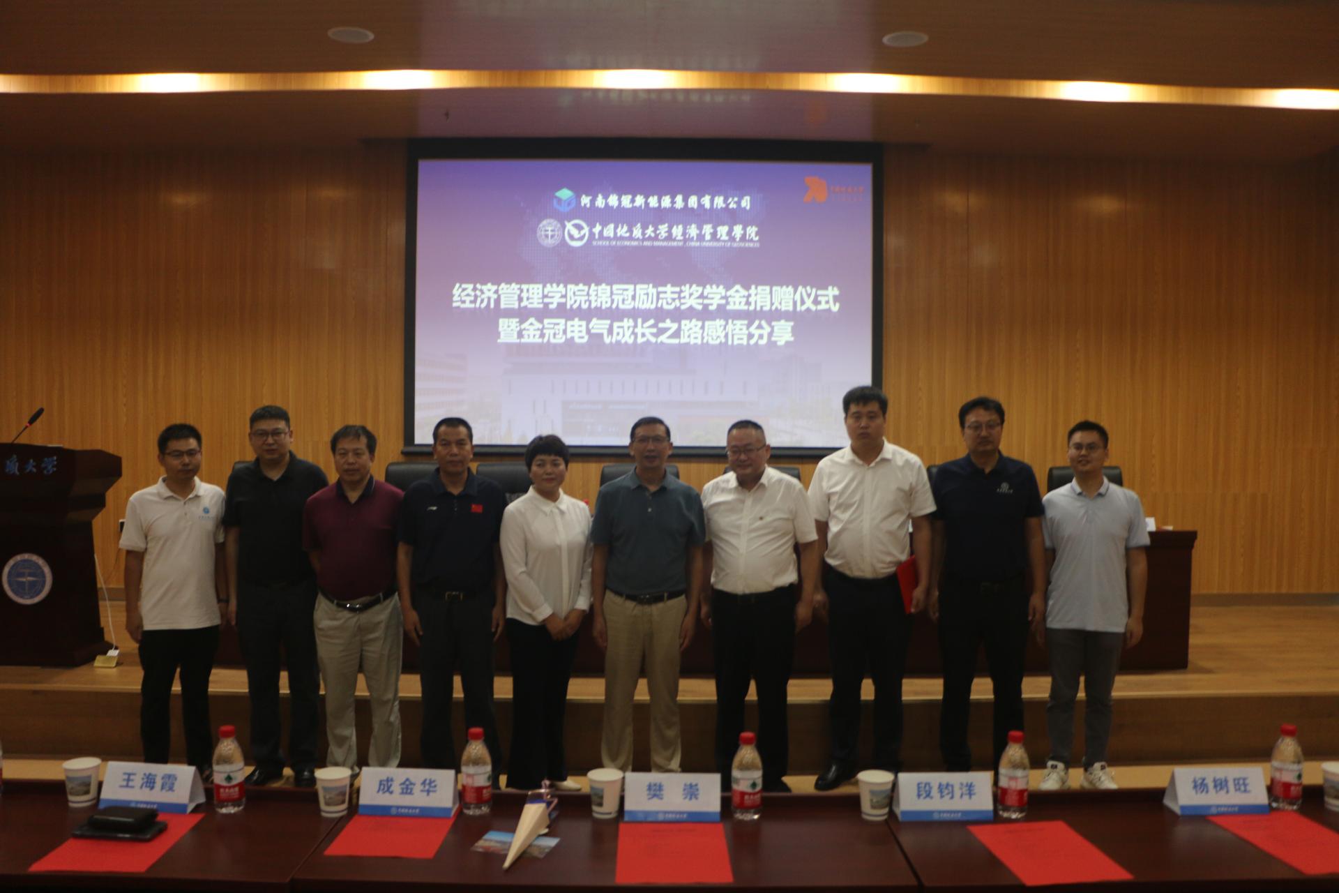 (通讯员 高婧珂)9月9日上午,williamhill英国“锦冠励志奖学金”捐赠仪。会议由学校原校党委副书记、纪委书记成金华教授主持。williamhill英国客座教授、河南锦冠新能源集团有限公司总裁、金冠电气股份有限公司董事长兼总经理樊崇向经管学院捐赠善款并致辞;金冠电气副总裁王海霞、人力资源经理段均洋及经管学院、自动化学院及校友与社会合作处负责同志参加了本次活动。